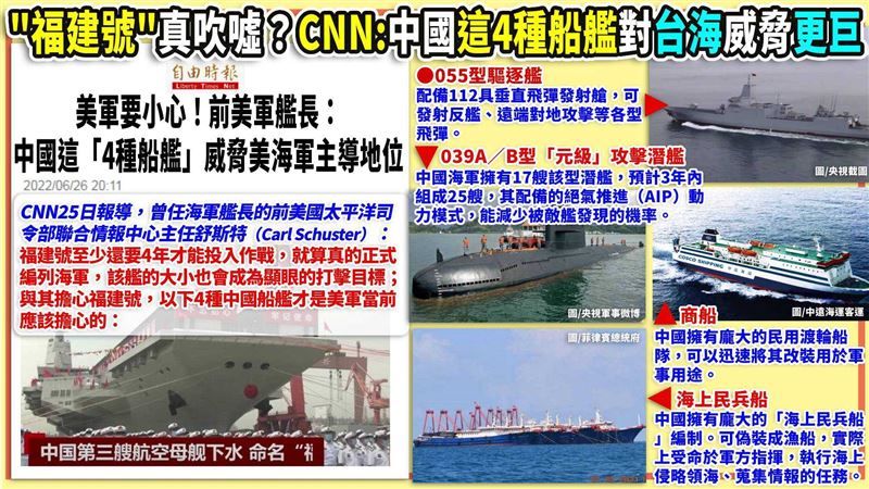 政治評論員李正皓在《94要客訴》節目中指出,海上戰力不僅看軍艦數量,還要看質量。中國帳面上軍艦數量雖然超過美國,但質量仍有一定差距。「中國軍艦比美國多60艘又如何?美國一堆盟友加起來,中國比得上嗎?」